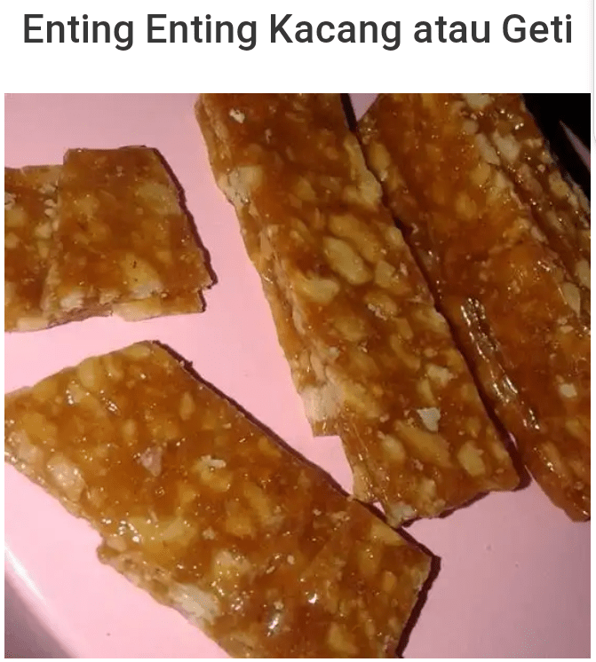 Enting enting kacang atau dikenal dengan sebutan geti merupakan sajian kuliner Tulungagung yang mudah ditemui dimana saja di kota Tulungagung. Makanan ringan yang satu ini dibuat dari campuran kacang tanah dan wijen yang dimasukkan ke dalam larutan gula merah kemudian dimasak hingga kering dan dikemas dalam plastik kecil. Rasanya tidak terlalu manis dan cenderung gurih hingga membuat siapapun yang memakannya menjadi ketagihan. Meskipun enak, enting enting kacang ini bisa membuat sakit gigi jika dikonsumsi berlebihan.